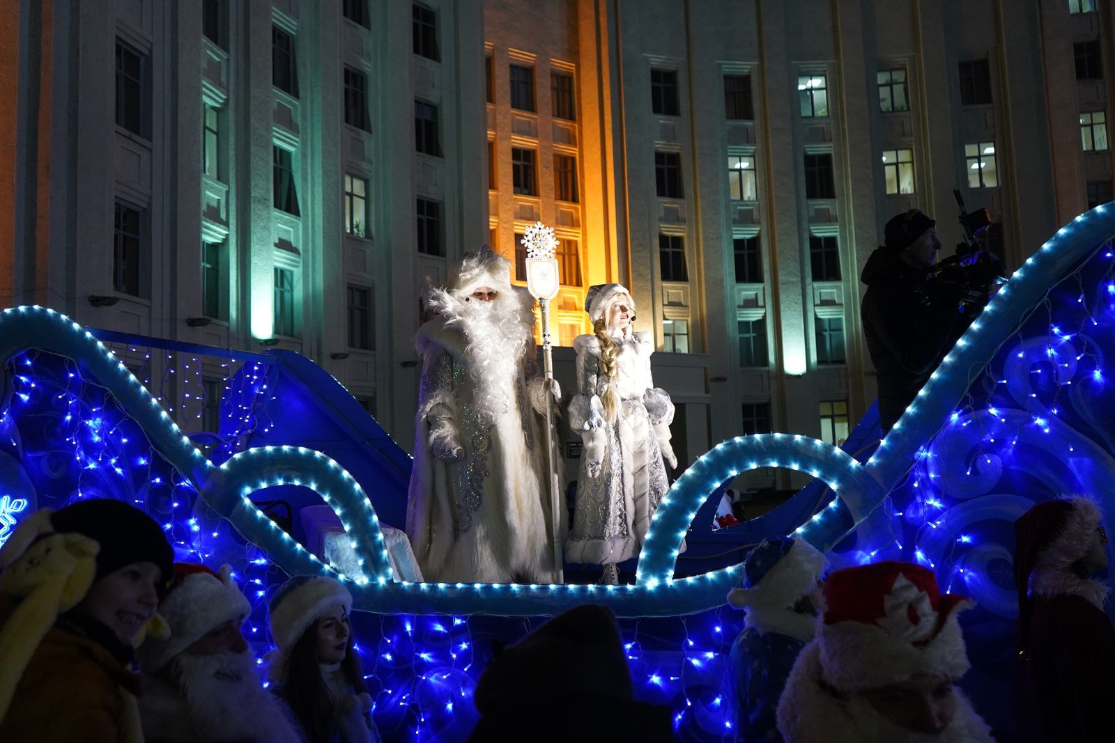 Во время новогоднего шоу состоялось торжественное зажжение огней на главной елке Могилевской области. Далее зрителей ждала масштабная концертная программа. На сцене выступили популярные блогеры, актеры молодежного интерактивного сериала «Зумеры», Павел Малахов, группа «Дрозды», Настя Кравченко.