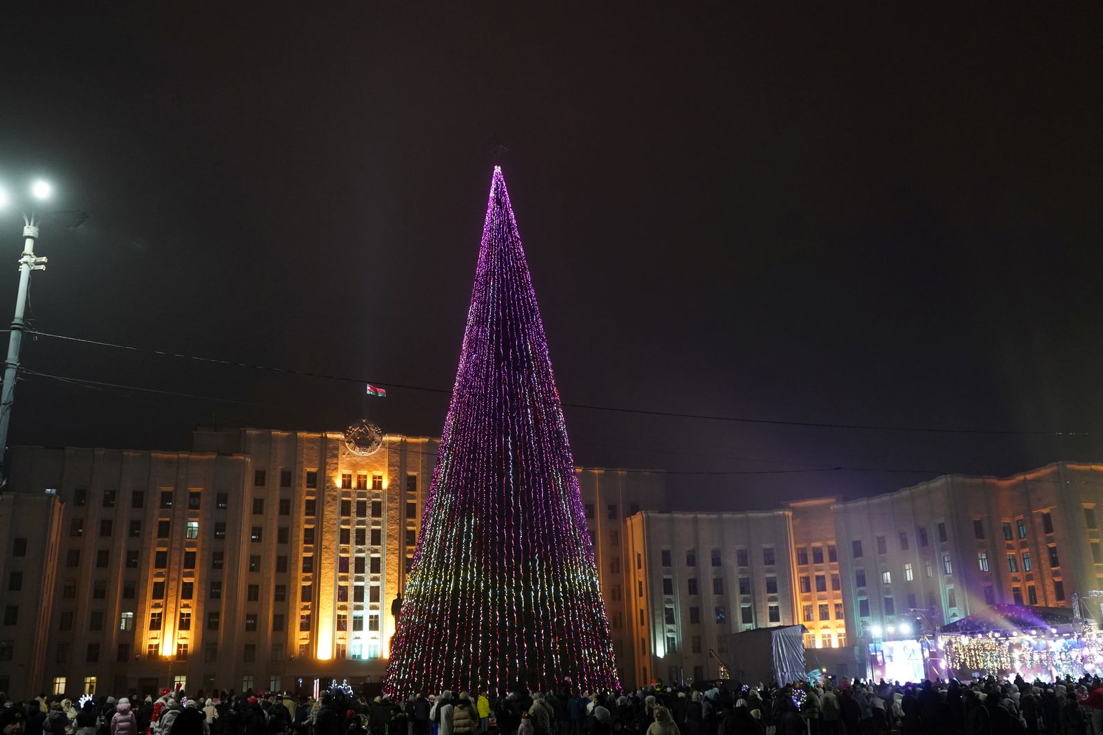 Также работники предприятия присоединились к праздничным мероприятиям в Октябрьском районе города — в сквере 700-летия Могилева прошло зажжение огней на главной елке района.